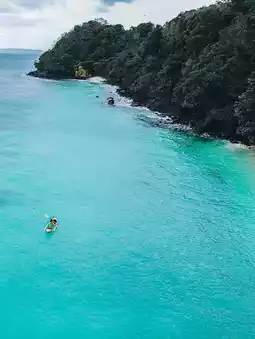 With a luxurious trip that cool people go on. Prepare a great set to sail a Catamaran from the mainland to a paradise island with a beautiful beach with clear water. There are chill activities such as viewing the view, sunbathing, kayaking, banana boating, or parasailing to challenge the wind.