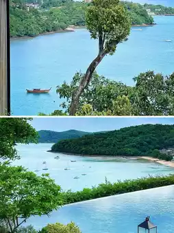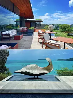 V Villas Phuket’s unique architectural design is a highlight of Phuket in itself, and the resort has multiple viewing platforms, perfect for couples, families and friends seeking absolute privacy and relaxation. The luxurious private pool villas enjoy corner views of the sea and forested hillsides, giving a remote and sublime feeling, making it a perfect romantic hideaway. The 180-square-meter Sea View Pool Villa is high above the bay and offers unparalleled sea views. The villa's spacious living area and bedroom, as well as the ensuite bathroom with a double spa bathtub are all very nice! The floor-to-ceiling windows offer spectacular sea views. The villa also comes with a private infinity pool with sea views and comfortable sun loungers. The entire outdoor space is surrounded by a spacious wooden deck, blending with the horizon of the Andaman Sea. It is so comfortable to vacation here!