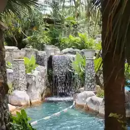 And what I really like is the swimming pool and the water park here because it is very big, with both a children's pool and an adult pool, with a slide and a whirlpool around it, passing through a bridge, passing through a waterfall, and having a place to jump off the cliff. Staying here, I was tired from playing in the water, but it was so much fun, I must say