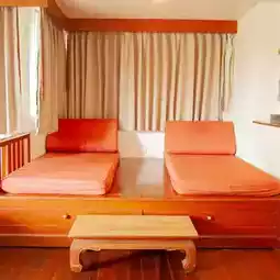 The bedroom is decorated in Thai style, with both single and double beds.