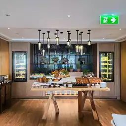 Today, we will have breakfast in the hotel's club room. There is both a buffet for us to help ourselves and hot food cooked fresh, plate by plate. We can order from the staff as much as we want. There is a fair amount of food to choose from. And of course, the restaurant is a five-star international hotel. It has all kinds of international food. This price is included in the room package. I think that if we book a hotel and want to eat at the hotel, I recommend booking a package together. If we pay separately, I remember it is about 1,000 to 1,500 baht per person, just for breakfast.