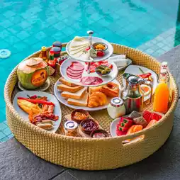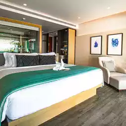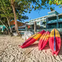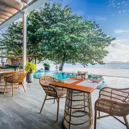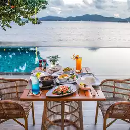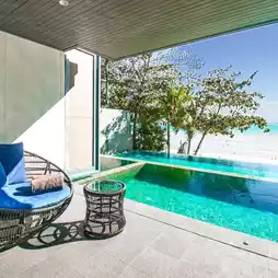 The accommodation is by the sea, beautiful beach, clear water, peaceful, private, luxuriously decorated rooms, fully equipped with facilities, a swimming pool in front of the room, beautiful view and also has activities such as kayaking, fitness, beach bar to sit and sip drinks, listen to music, in the evening, sit and have dinner and watch the sunset. I must say that it is beautiful and very romantic. The food here is delicious. There are many menus to choose from. If you come to Phuket and want to relax at a beachfront accommodation like this, I recommend this place.