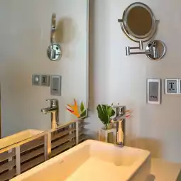 ✔️ The rooms at Pullman Arcadia Phuket feature a modern and elegant light beige interior, offering both comfort and sophistication. The spacious area and soft tones create a relaxing atmosphere, with the sea view from the bathroom being the highlight of the room. You can relax in the bathtub while enjoying the sea view, making this room a perfect choice for a true getaway.