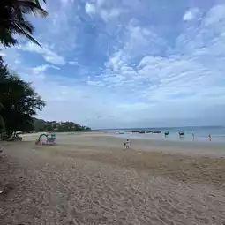 My fav beach in the area. Here you have everything next to the beach: massage, water sport, bars, smoothies, small shops and hotels. You don't even have to cross the road. The beach itself has this stunning view with lots of palm trees and transparent water without any rocks. Water is shallow quite far deep, safe for children. I have been to other beaches down the island. This one is just the one and only.