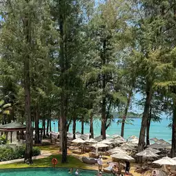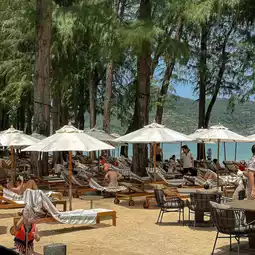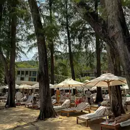 Pine Beach Bar: If we talk about Kamala Beach in Phuket, this is another beach with a beautiful and peaceful beach. Most people come here to practice surfing or sunbathe. Most tourists are foreigners and there is a beach bar that looks as beautiful as any other country, which is 'Pine Beach Bar' at the Intercontinental Phuket Hotel, where outsiders can come and use the service, whether it's to sit and sunbathe, read a book, or just relax and enjoy the atmosphere. Drinks and food are always served. In the evening, there will be a fire twirling show. The vibe is awesome. 🥥🍹⛱️🕶️