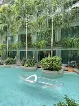 🌊A hotel by the sea, just cross the street and you'll arrive. There are 2 swimming pools, a small pool on the 2nd floor of the building with a fitness center and another pool in the middle of the hotel. It's very beautiful. There are also free clear boats to paddle. The rooms are large and the beds are soft and comfortable to sleep in. I really like this place.