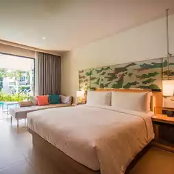 #trip takes you to fly to Asia. A luxury seaside resort on Mai Khao Beach. The swimming pool is beautiful and the photo angles are very good. Phuket Le Meridien PhuketMaiKhao Beach Resort is a beachfront accommodation just a few steps from Mai Khao Beach and not far from the airport. The resort is surrounded by shady trees. The large swimming pool has 2 zones with sea views and a slide. The rooms next to the pool are beautifully decorated and well-proportioned. They provide complete facilities. Just bring a beautiful outfit to take pictures. Here, there is a cafe zone with bakery, drinks, food, or even shabu. In the evening, come and watch the sunset by the sea. The atmosphere is very good. They also have a beachfront restaurant. I must say that every menu is delicious. Or you can sit at the beach bar and chill. There is also Le scoop ice cream from the resort. There are many flavors to choose from. It's very delicious. It's so refreshing when you come to Phuket. You can't miss staying here because it's beautiful and good for your heart. #Phuket #Good atmosphere accommodation #travel #Sea