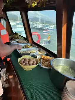 The water here is not super clear, but the ecology is very rich 🤍 There are a lot of fish and corals. We were also lucky enough to see a manta ray! After the first dive, the boatman provided us with a variety of food to choose from. And the taste is also great 👍🏼
