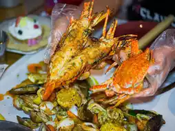 #Phuket attractions #100 ways to travel Claws & Co Phuket, a seafood restaurant in Mai Khao Beach, Phuket Province, has large lobsters. The shop is decorated luxuriously. The red team has a bar with live music. You can order drinks. The food menu here is great. There is a bucket of shrimp that you must try. The sauce is very delicious. There are steamed, grilled, lobster, oysters, and other menus. Plenty of desserts. The shop is located in the Avanimaikhao Hotel, Phuket Province, right on the road. #Phuket travel #travel #point out delicious restaurants #delicious tell others