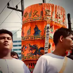 The main procession will be led by a procession of flags and nameplates, followed by a small palanquin procession, or "Cai Pie". Then it will be followed by a Chinese umbrella procession, "Nua Sua", and finally a large palanquin procession, "Tua Lian", of Kiew Ong Tai Te, with a medium joining the procession.
