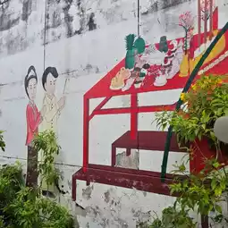Inside the shrine, there are dragon-shaped stucco roofs, Chinese dolls, and paintings of the legend of Xi Ying Gui. People often come here to pray for solutions to their business problems.