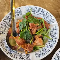 This is a restaurant I highly recommend. Every dish here is delicious. Today, we ordered Stir-fried Melinjo Leaves with Egg, which was quite well-prepared. Another dish we loved was the Fried Pork Belly with Fish Sauce. It was perfectly crispy and had a salty flavor that paired wonderfully with rice. Additionally, they have other recommended dishes such as Moo Hong (braised pork belly), Pomelo Salad with Fresh Shrimp and Minced Pork, and Spicy Cockle Curry. Be sure to stop by and try them out!