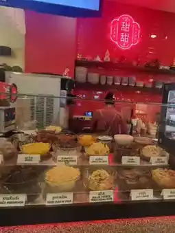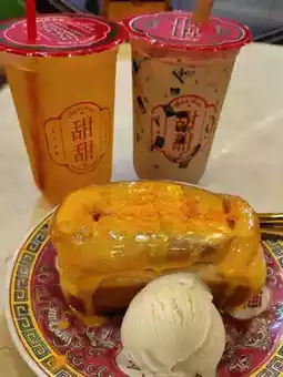 💜 The shop has a lot of desserts to choose from. Drinks such as Taiwanese milk tea, brown sugar ou aew, don't miss it. Today I tried it, it was very fragrant and sweet, 10/10. 🥹🥹 Chinese medicine chrysanthemum, iced milk, Thai tea, green tea, hot, cold or blended chocolate are also available.