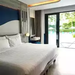 🛌 This trip, we stayed in the 𝗣𝗼𝗼𝗹 𝗔𝗰𝗰𝗲𝘀𝘀 room next to the pool. The interior is decorated in a modern style. Comes with a large bed And a bathtub Full facilities Open the door from the room to the pool. 🏖️🌴