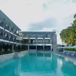 🏨 The hotel is located in Phuket city, decorated in a marine style in white and blue tones. There is a large swimming pool in the center of the hotel. Along with a restaurant, cafe, and bar And in addition to the complete service The hotel is also close to many famous restaurants. 🍸🍹