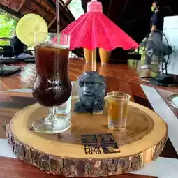A beautiful shop in the heart of Phuket city decorated in a tropical style, in the middle of the forest, surrounded by nature and big trees. The shop is located on a hill, allowing a beautiful high-angle view of Phuket. Ready to serve a variety of food and drinks