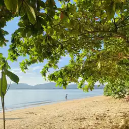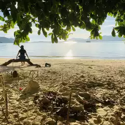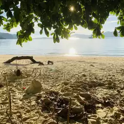 Secret beach, Chana beach, is between Ao Yon and Khao Khat. Enter Soi 7 and go straight in. There are few people, the beach is clean, beautiful, the atmosphere is very good. Come and watch the sunset. 🏝️🏖️ It's really beautiful. If you go to other beaches in Phuket and there are many people and you want privacy, I recommend this place. Not many people know about it yet. Come sunbathe, sit, eat snacks, read a book. It's quiet. There are few tourists because it's a secret beach. 😄 You have to come quickly. Later, more people will know about it. It won't be quiet anymore. 😂