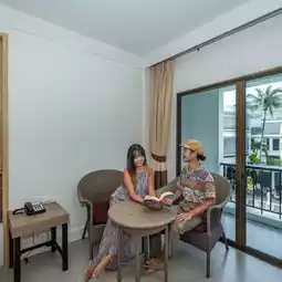 The 2 of us stayed in a Deluxe Pool View room, which is a room with large glass windows and a balcony that can see the view of the resort's main swimming pool. The room has complete facilities.