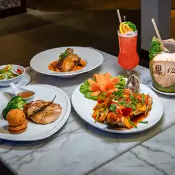 There are both local Thai food and grilled food