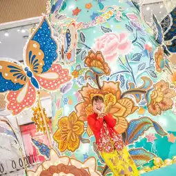 This decoration is inspired by the distinctive fabric patterns from the Peranakan culture, which are assembled into a Christmas tree, including swans, a symbol of auspiciousness and a representative of the Baba Peranakan ethnic group, peony, a symbol of wealth and nobility, swallows, a symbol of a bright life, and butterflies, a symbol of love and bonding. Snowflakes were inspired by pins or brooches, an accessory that is often seen attached to the clothes of Phuket Baba Peranakan people. It is shaped like a scattered star, which is an important accessory attached to the Kebaya costume of the Baba people. The top of the Christmas tree is inspired by "Hua Kuan" or a crown of swaying flowers. It is a headdress of the bride in a wedding ceremony according to the Peranakan culture.