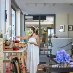 For food, there is 1 restaurant next to the pool. It serves all day, from breakfast to dinner.