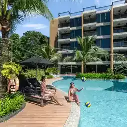 Panoramic view of Patong city The pool is a good size. There are life rings to play with and a Jacuzzi corner to sit and relax in. Next to the pool is a Pool Bar that serves a variety of drinks.