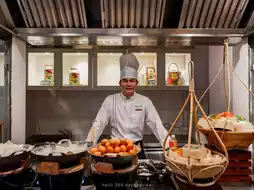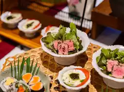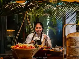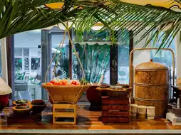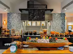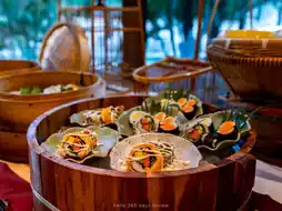 Dewa Phuket Resort and Villas organizes a full seafood buffet at Terrace Grill restaurant. The highlight is the seafood boat in the middle of the restaurant. There are many types of shrimp, shellfish, crab, fish, squid. In addition, there are Thai dishes such as papaya salad, fried rice, crab curry, shrimp baked with glass noodles, etc. For those who like Japanese food, there is a little sushi.