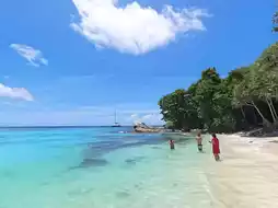 After lunch 🥣, we headed to our second stop, Coral Island. Here, you can pay extra for activities like underwater walking, parasailing, banana boating, snorkeling, or just relax at the beach bar for half a day. The experience course costs around $600 and lasts for half a day, which is quite worth it.