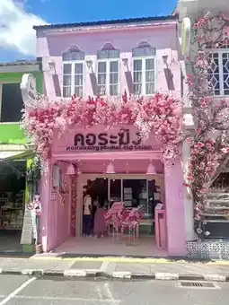 This is a striking pink cafe and restaurant located in the Phuket old town area. The highlight of this shop is the use of artificial flowers in pink tones to decorate the walls and ceilings of the shop. Walking into the shop is like entering a fairy tale. There are many photo spots. The shop has 2 floors in total. The menu in the shop has both savory and sweet menus. There are also local Phuket dishes to try. The price is quite high, but when compared to the atmosphere, it is worth it.