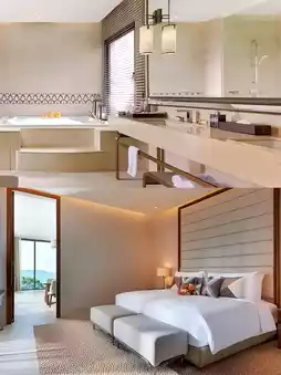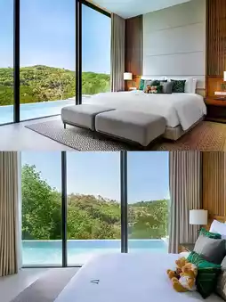 As soon as you step into the hotel, you can feel the perfect blend of tropical charm and modern luxury. The spacious villas are uniquely designed, with every detail exuding sophistication. The private pool glistens in the sunlight like a giant blue gem, inviting you to dive in and enjoy the coolness and comfort.