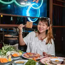 Another thing is that it's a place to chill out, the food is delicious, and the spiciness is really great. I really like the Luang Prabang papaya salad. Or if you want to eat grilled pork, they have it here too. The starting set is 299.-. They're open until the morning, so you can order as many sets as you want. 😁🤭