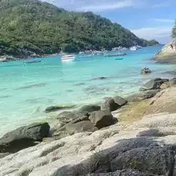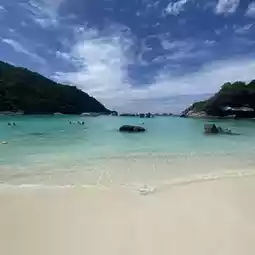 It's only about a 30-minute boat ride from Phuket. The water at Koh Racha is very clear. I want everyone to try it. There is a point to go up and see the view. It's a very beautiful view. 🩵 We went on a trip for 990 baht per person for a full day (Koh Racha-Koh Hey). If anyone goes to Phuket, we recommend it. 🪸🏝️🐚 🏖️ #Seaside #PhuketTravel