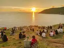 Another viewpoint that is quite a highlight that you can't miss. This point is located on a high hill, not far from the Phromthep Cape Viewpoint, facing the sea on the west side of the island. The beach below that is clearly visible is Nai Harn Beach. For those who drive, there is a parking lot behind the windmill, which is free of charge. As for the entrance and exit, you have to be extra careful because it is a curve and a hill. In the evening when the sun sets, there will be a lot of tourists coming to visit the beauty and see the view.