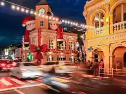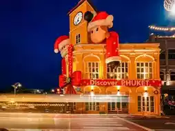 Full Christmas festival in Phuket Province, which can be called doing good, doing it to the fullest, with Santa Claus inviting Santi to climb the yellow building in the middle of Charter Intersection, in the heart of Phuket City, which made tourists admire it, including the decorations at Surin Roundabout, which has Santa, angels, and Cookie Run, which come to create more fun from the first point.