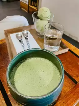 • ชาเขียวเข้มข้นและไอศกรีมมัทฉะโฮมเมด