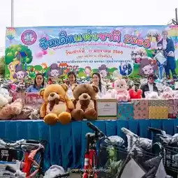 This year, Sri Sunthon Municipality organized the event at Khum Nam Bang Maruan as usual. Mayor Aum and the group dressed in school uniforms to hand out gifts to the children. This year, there were so many gifts. I wanted to go and queue to receive them. 5555 There were also many delicious foods, and of course, Brother Jeans went to wait in line to receive Tokyo snacks. 🤣