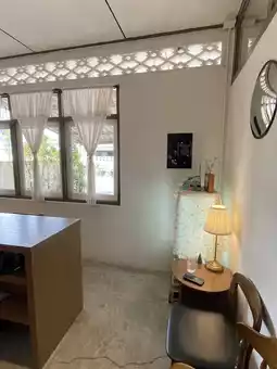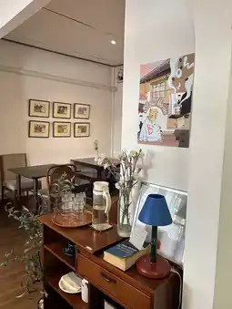 A cafe that makes every corner feel like someone is sitting and drinking coffee comfortably at home. The atmosphere is quiet and suitable for relaxing. The building is a white single-family house.