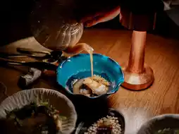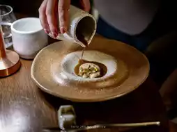 - Fifth dish: "O Tao" is the dish that we like the most because it is a familiar Phuket dish but transformed beautifully. It uses large oysters grilled to the right temperature, eaten with O Tao sauce and taro foam.
