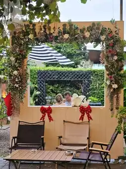 It is a cafe near the airport. There is accommodation at the back. The cafe is decorated in an English style. There are photo spots both outside and inside. Every corner is beautiful. It is comfortable and shady. It is a cafe that has been open for a long time. But it has been renovated to be more beautiful all the time.