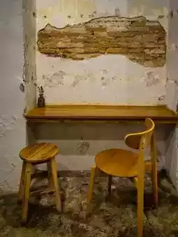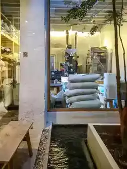 The interior of the shop is decorated in a minimalist style, with raw cement walls, good lighting, and an emphasis on natural light, making it a great place to take pictures. The air conditioning is cool and comfortable. The area at the back is an outdoor area with a tree in the middle of the shop. There are natural light channels from above that shine through, giving it another feel.