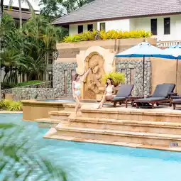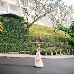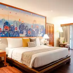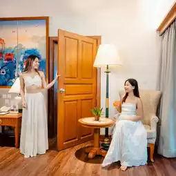 There are many types of rooms here. The room we stayed in was newly renovated and connected to another room, perfect for groups of friends or family. The hotel is beautiful and lush with complete facilities, including two large swimming pools, making it an ideal place for relaxation.