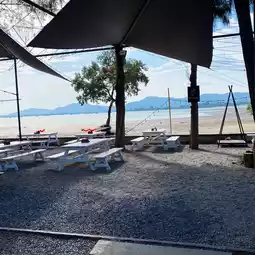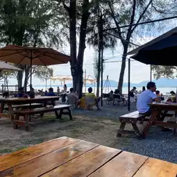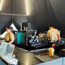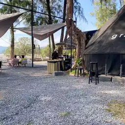 For those who are looking for a relaxing corner with a natural atmosphere, this place is the perfect answer with a large black tent that is unique and has both indoor and outdoor seating. It is perfect for sitting and sipping coffee, listening to the sound of the waves, and taking beautiful photos. 📸