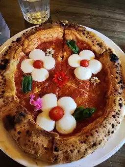 A must-try menu is the Flower Mozzarella Pizza, thin and crispy but soft dough, topped with creamy mozzarella and fragrant herbs that make the taste rich but not too heavy. Another recommended menu is the Burrata and Tomato Salad, fresh tomatoes topped with a special sauce and soft Burrata cheese, which perfectly balances the taste of the pizza. There is also the Truffle Fries, crispy French fries sprinkled with Parmesan cheese and fragrant truffle oil that will make you fall in love immediately.