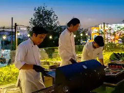 Invite friends to enjoy a delicious midweek buffet with meat at Courtyard by Marriott Phuket Town, Krua Talat Yai restaurant on the 2nd floor, relax on the balcony with a clock tower view