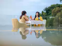 A rooftop restaurant in a hotel. The atmosphere opens with a view of the sea as far as the eye can see. Surrounded by mountains Watch the sunset in the evening, very romantic. You don't have to stay here to have a luxurious dinner with a stunning view like Nuch.