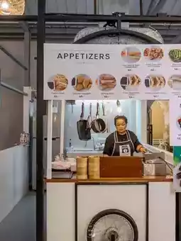 Inside, there are tables and chairs, with a teahouse feel, comfortable seating, and all the vendors are lovely.
