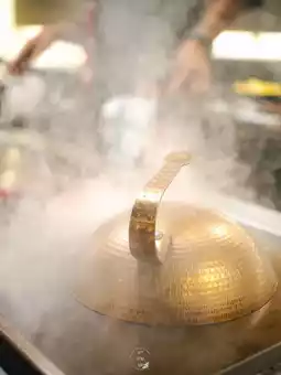While waiting for the food, the chef will show off his cooking skills with a fire on the stove for us to take pictures. Enjoy cooking with the chef. Meat lovers must not miss the “A5 Wagyu”, soft and tender meat that melts in your mouth. Nuch tried tiger prawns, lamb, and fresh vegetables. Grilled menus are served fresh from the stove.