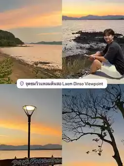 📍 2. Laem Dinso – A quiet viewpoint, not crowded, steep cliff views contrasting with the blue sea, the sunset behind the mountain is a super mellow sight