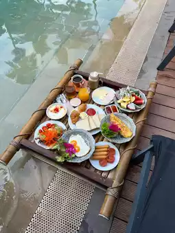 #favouriteitinerary Waking up to the ultimate breakfast vibes at Burasuri Hotel 🌅🍽️💦 Floating breakfast = the ultimate flex! 💯 Picture this: fresh fruit, eggs, pancakes, all while you're chilling in a private pool with the best view of the ocean 🌊🍓. Can’t imagine a better way to start the day. If you’re not getting that Instagram-worthy breakfast, are you even living? 😎✨ #floatingbreakfast #burasurihotel #breakfastgoals #thailandvibes #luxuryliving #travelgoals #poolsidevibes #wanderlust #foodieheaven