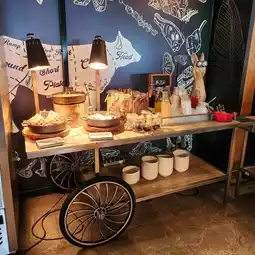 Cold-pressed vegetable and fruit juices, fresh coffee.